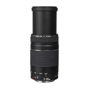 لنز دوربین کانن EF 75-300mm f/4-5.6 III از Canon که دارای محدوده تله فوتو همه کاره است، زوم 4 برابری دارد که با طراحی نسبتا سبک وزن و ضریب فرم فشرده آن مشخص می شود. این لنز برای سوژههای مختلف از جمله پرتره و ورزش مناسب است، این لنز پرتره تا میدان دید تله فوتو متوسط است و از یک موتور میکرو DC برای ارائه عملکرد فوکوس خودکار سریع و دقیق استفاده میکند. با بهره مندی از کیفیت تصویر، یک پوشش Super Spectra برای کاهش شعله ور شدن لنز و شبح به منظور دستیابی به کنتراست بالا و رنگ های دقیق، روی عناصر جداگانه اعمال شده است. علاوه بر این، دارای یک دیافراگم هفت پره برای تولید بوکه صاف و دلپذیر است.