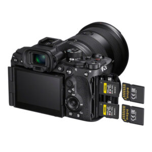 دوربین Sony a7R V دارای دو درگاه کارت حافظه CFexpress Type A و SD میباشد. این ویژگی، امکان ذخیرهسازی تصاویر و فیلمها در دو کارت حافظه را فراهم نموده و امنیت بیشتری را برای ذخیرهسازی دادهها به ارمغان میآورد.